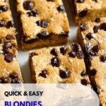 - Cool and Slice: Remove the blondies from the oven and allow them to cool in the pan for at least 20 minutes. Use the parchment paper overhang to lift the blondies out before slicing them into 12 pieces.