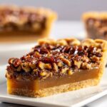 - Assemble and Bake: Pour the pecan filling over the pre-baked crust, spreading it evenly. Bake for an additional 25-30 minutes until the filling is set and golden brown around the edges. Allow to cool completely.