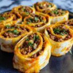 These Easy Taco Pinwheel Appetizers are a flavorful and fun party snack featuring a creamy, cheesy taco-seasoned filling wrapped in soft flour tortillas. Perfect for gatherings or game day, they combine cream cheese, cheddar, green chilies, and seasoned ground beef or turkey rolled into bite-sized pinwheels that are chilled and sliced for easy serving.