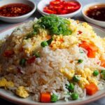 This classic Egg Fried Rice recipe combines fluffy scrambled eggs, crisp mixed vegetables, and fragrant jasmine rice for a quick and satisfying meal. Perfect for using leftover rice, it’s flavored with soy sauce, five-spice powder, and toasted sesame oil for an authentic taste of Asian-inspired comfort food.