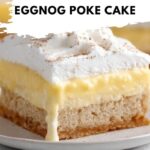 This Eggnog Poke Cake is a festive and moist dessert perfect for holiday gatherings. Made with a vanilla cake base flavored with cinnamon and nutmeg, it’s soaked with rich eggnog and filled with creamy vanilla pudding. Topped with fluffy whipped topping and a sprinkle of warm spices, this cake offers a delightful combination of traditional holiday flavors in every bite.