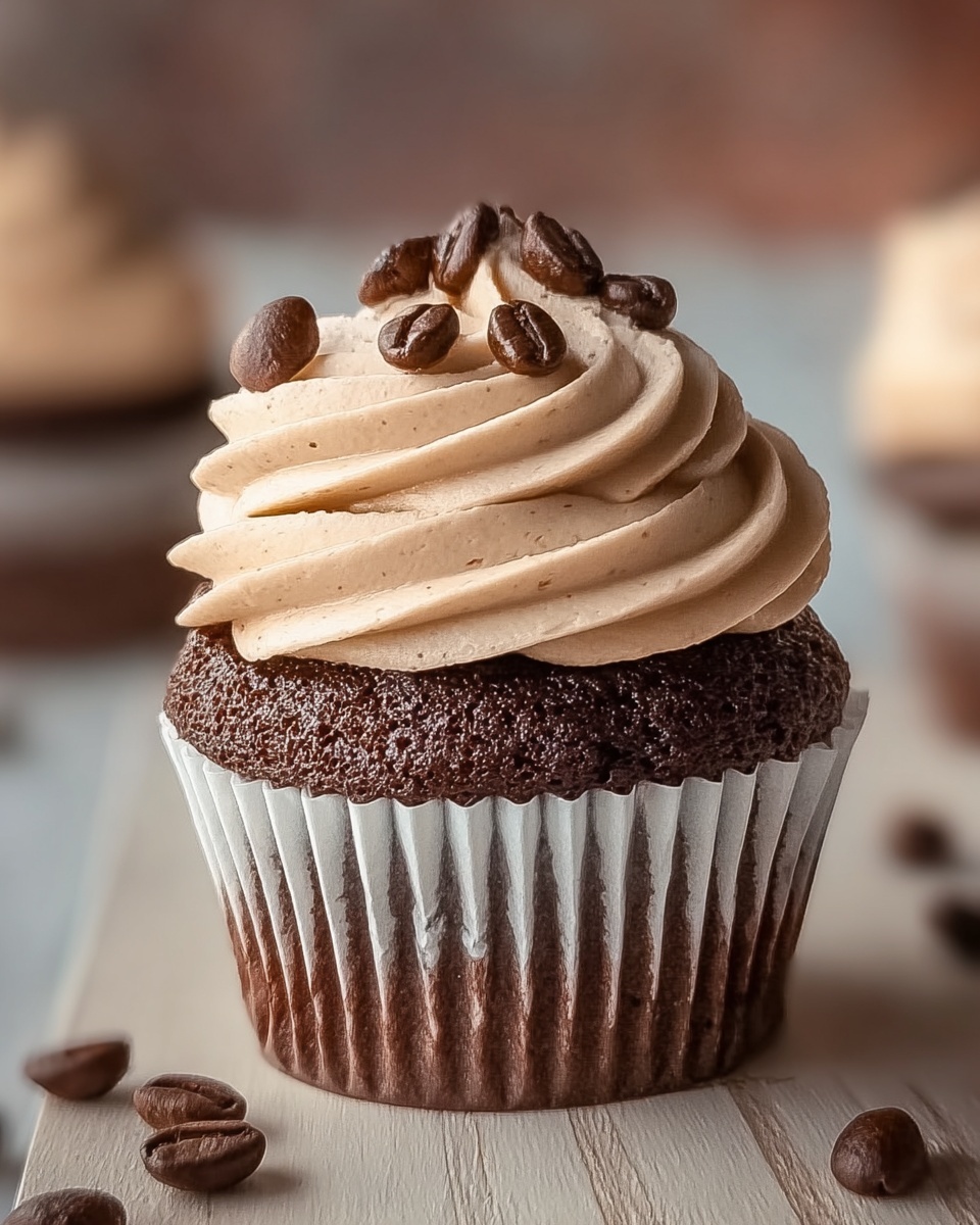 Try serving these cupcakes in a rustic wooden box lined with parchment paper for a charming homemade vibe. Or, for a festive twist, place them on a tiered dessert stand sprinkled with edible gold flakes or mini chocolate-covered coffee beans. They also shine when wrapped individually in cellophane with a pretty ribbon, making for wonderful party favors or gifts.