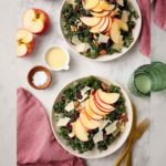 Remove the leaves from the tough lacinato kale stems and chop the leaves into bite-sized pieces. Add the kale, fennel, and the rinsed shallots into a large mixing bowl to ready everything for the dressing.