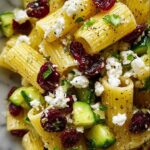 This vibrant Feta & Cranberry Rigatoni Salad is a refreshing pasta dish combining creamy feta cheese, sweet dried cranberries, crisp cucumber, and juicy cherry tomatoes, all tossed in a zesty lemon vinaigrette. Perfect for a light lunch or as a flavorful side, this salad balances tangy, sweet, and savory flavors with a delightful mix of textures.