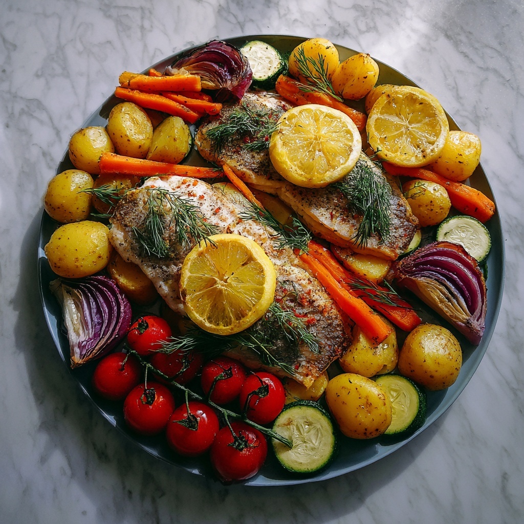 Fresh herbs such as dill or parsley are perfect to sprinkle on top right before serving, providing a pop of color and herbal brightness that balances the roasted vegetables and fish. A wedge of lemon on the side invites everyone to add an extra citrusy kick if they wish.