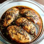 This flavorful chicken marinade combines a tangy mix of balsamic vinegar, soy sauce, lemon juice, and aromatic herbs to deliver tender, juicy chicken breasts packed with savory and slightly sweet notes. Perfect for grilling, baking, or pan-searing, this marinade enhances the natural taste of the chicken while ensuring maximum moisture and tenderness.