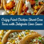 These Fried Chicken Street Corn Tacos with Jalapeño Lime combine crispy fried chicken, charred sweet corn, and a zesty jalapeño lime mayo sauce, all wrapped in warm corn tortillas. This flavorful taco recipe brings together creamy, spicy, and tangy layers for a perfect quick and delicious meal inspired by classic street food.