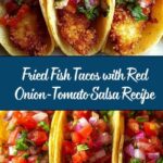Deliciously crispy fried fish tacos paired with a fresh red onion-tomato salsa and a tangy lime crema. This Mexican-American favorite features tender white fish coated in a light, crunchy batter, served on warm corn tortillas with shredded cabbage and a vibrant homemade salsa for a perfect balance of flavors and textures.