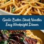 A flavorful and easy-to-make Garlic Butter Steak Lightning Noodles recipe featuring tender flank steak, savory garlic butter sauce, and perfectly cooked egg noodles. This dish combines robust umami flavors with a hint of spice and sweetness, making it an ideal quick dinner for 2 to 3 servings.
