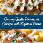 This Garlic Parmesan Chicken with Creamy Rigatoni Pasta is a delicious and comforting meal featuring tender chicken breasts seared to golden perfection and tossed with rigatoni pasta in a rich, creamy Parmesan sauce. The dish is infused with garlic and Italian herbs, making it a perfect family-friendly dinner ready in just 30 minutes.