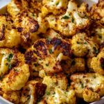 This Garlic-Parmesan Roasted Cauliflower recipe offers a deliciously crispy and flavorful vegetable side dish. Tender cauliflower florets are tossed with olive oil, garlic, oregano, and smoked paprika, then roasted until golden and topped with melted Parmesan cheese. It’s a simple yet satisfying way to elevate cauliflower with savory, cheesy notes and a hint of freshness from parsley and lemon.