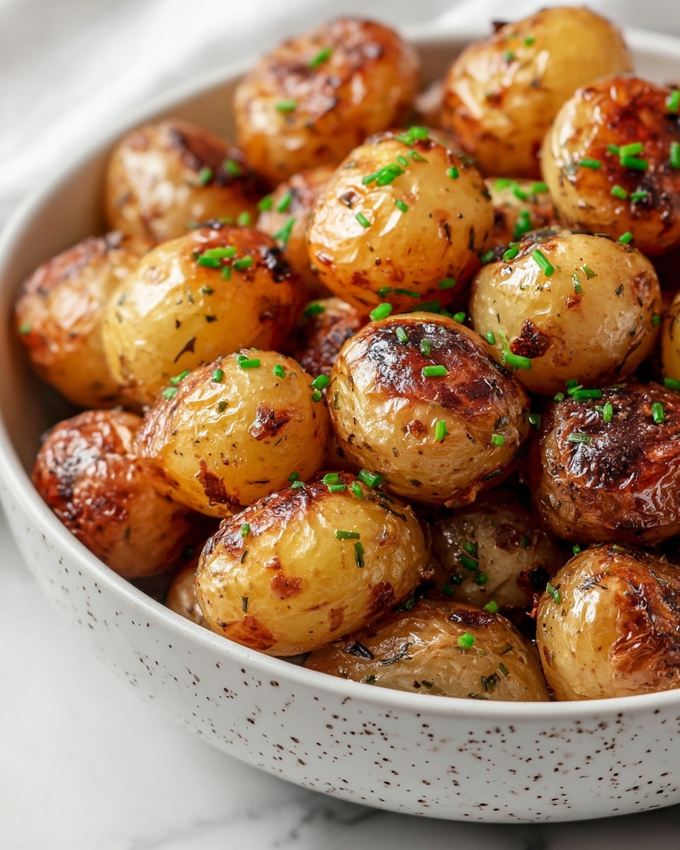 This Garlic Roasted Potatoes recipe features tender baby gold potatoes roasted to golden perfection with a garlic-infused olive oil seasoning. Crisp on the outside and soft inside, these flavorful potatoes make a perfect side dish for any meal, enhanced with fresh herbs like chives or parsley for a bright finish.