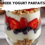 This Greek Yogurt Parfaits recipe is a quick and delicious layered dessert or snack featuring creamy honey vanilla Greek yogurt, fresh strawberries and blueberries, and crunchy almond granola. Perfect for a healthy breakfast or a light treat, these parfaits combine creamy, sweet, and crunchy textures beautifully in every bite.