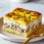 • Frozen shredded hashbrowns: The base of the casserole, bringing tender, comforting potato texture.