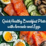 A wholesome and balanced healthy breakfast plate featuring sautéed spinach, creamy avocado, cherry tomatoes, cooked quinoa or whole grain toast, and eggs cooked to your preference. This quick and nutritious meal offers a great source of protein, healthy fats, and fiber to fuel your morning.
