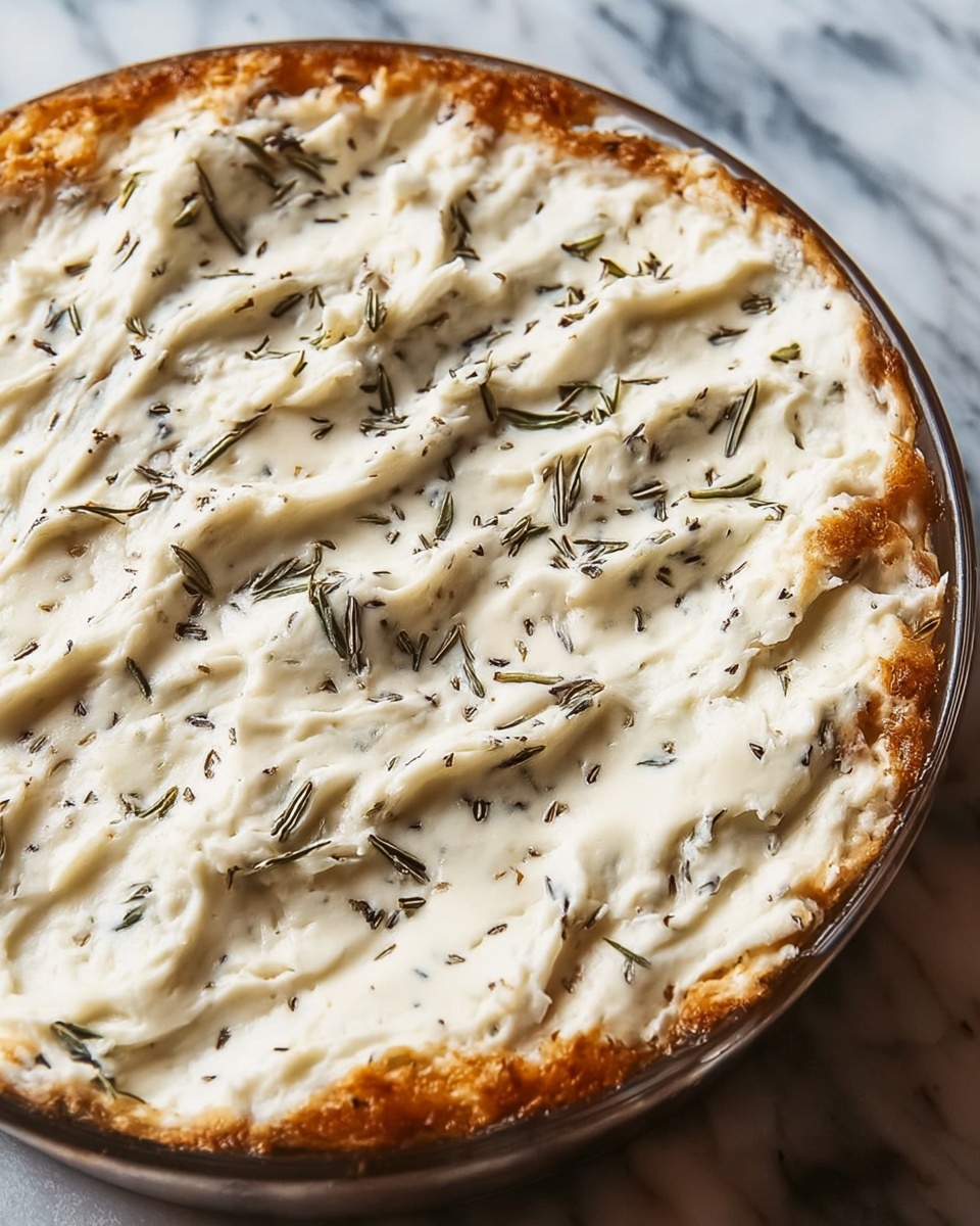 Fresh parsley is a classic garnish that adds not only a vibrant green color but also a fresh burst that contrasts beautifully with the rich cheese. You can also try a light drizzle of olive oil or a sprinkle of flaky sea salt for an extra flavor boost right before serving.