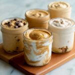 This high-protein ice cream recipe combines the creaminess of traditional ice cream with a nutritious boost from protein powders, banana, and almond butter. Designed to be made at home without an ice cream maker, it uses a simple shake-and-freeze method in a mason jar to create a smooth, satisfying frozen treat that’s perfect for a post-workout snack or a guilt-free dessert.