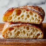 Simple touches like a light brush of olive oil and a sprinkle of sea salt right after baking elevate this ciabatta to a flavorful experience. You can also add a bit of fresh rosemary or cracked black pepper for added aroma and complexity.