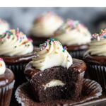 You can freeze these cupcakes after filling and dipping in ganache but before piping the icing swirl. Wrap each cupcake individually in plastic wrap, then place them in a freezer-safe container. They’ll keep well for up to two months. When ready, thaw in the fridge overnight and add the icing swirl fresh before serving.
