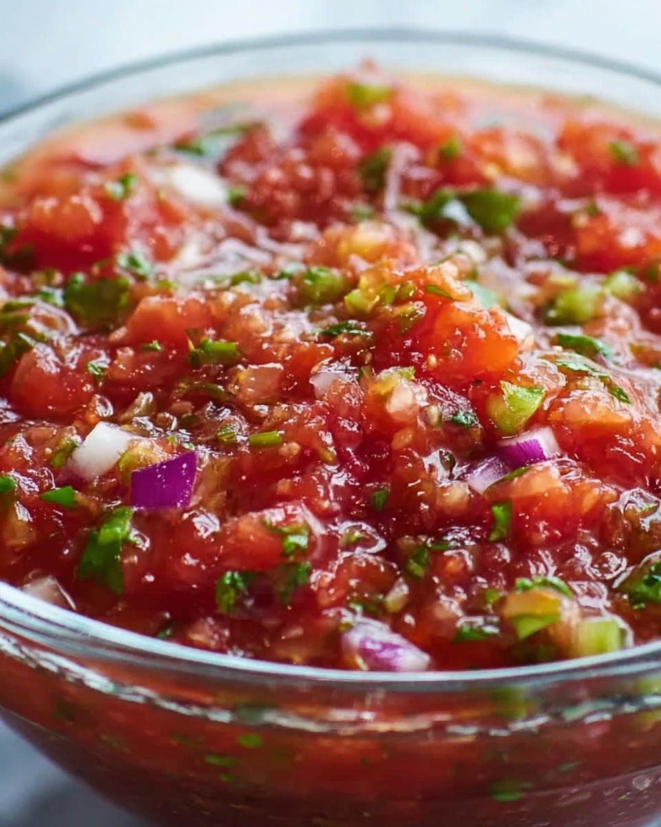 This vibrant homemade salsa recipe is a fresh, zesty blend of ripe tomatoes, red onion, jalapeños, cilantro, and lime juice. Perfect as a dip, topping, or side, this easy no-cook salsa comes together in minutes and adds a flavorful punch to any meal.