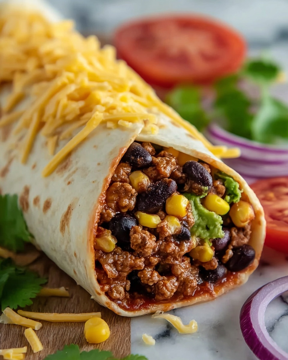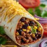 - Preheat Oven and Assemble: Preheat your oven to 350°F (175°C). Lay the flour tortillas flat on a baking sheet. Evenly spoon the beef and bean mixture onto each tortilla then sprinkle with shredded cheese. Roll the tortillas tightly around the filling to enclose it.