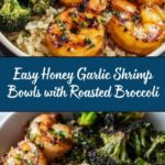 These Honey Garlic Shrimp Bowls with Roasted Broccoli are a delicious and healthy meal perfect for a quick weeknight dinner. Tender shrimp are sautéed in a sweet and savory honey garlic sauce, paired with oven-roasted broccoli for a crispy, flavorful side. Served over fluffy rice or quinoa and garnished with fresh cilantro, this recipe balances vibrant flavors and nutritious ingredients for a satisfying dish.