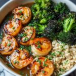 These Honey Garlic Shrimp Bowls with Roasted Broccoli are a delicious and healthy meal perfect for a quick weeknight dinner. Tender shrimp are sautéed in a sweet and savory honey garlic sauce, paired with oven-roasted broccoli for a crispy, flavorful side. Served over fluffy rice or quinoa and garnished with fresh cilantro, this recipe balances vibrant flavors and nutritious ingredients for a satisfying dish.
