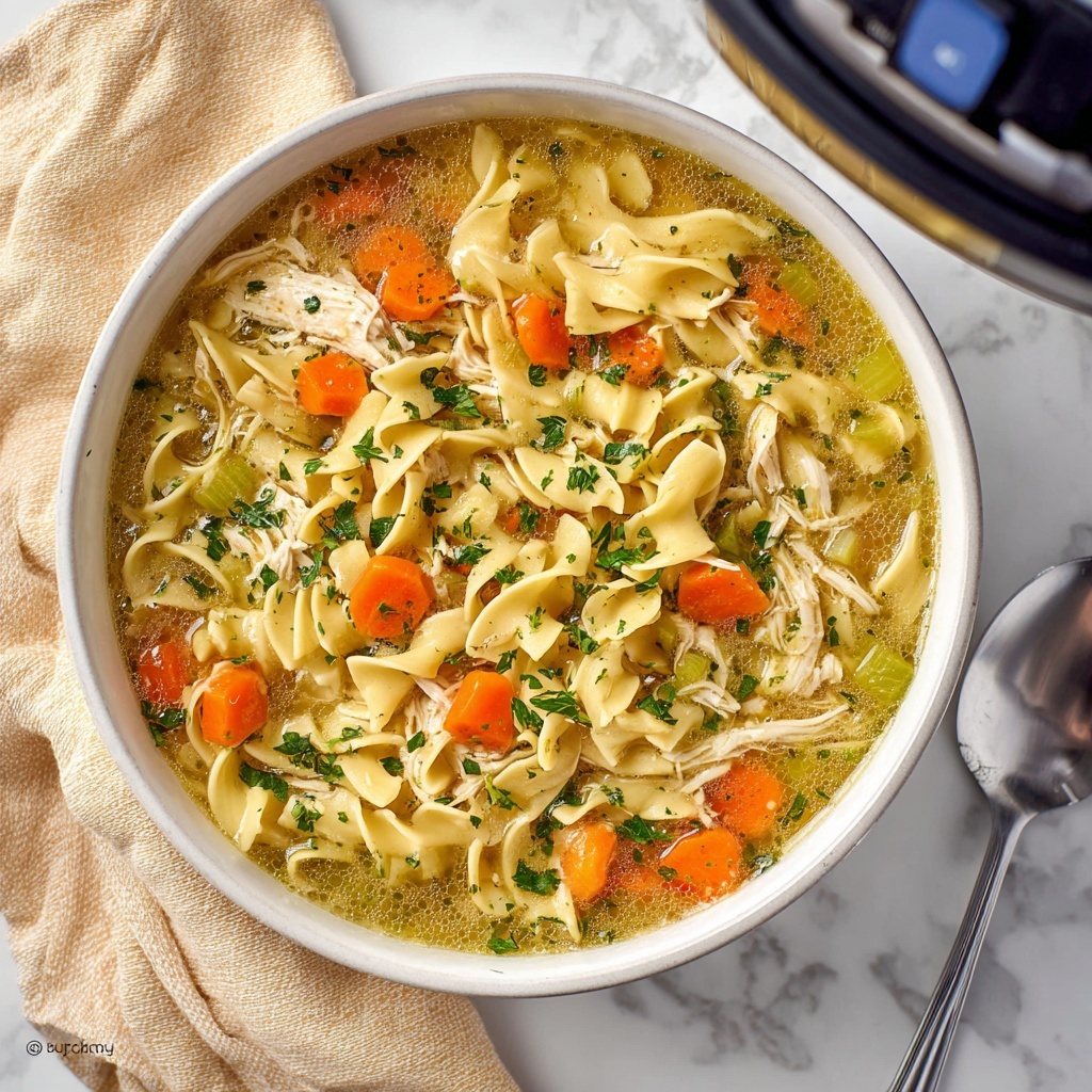 To make your Instant Pot Chicken Noodle Soup Recipe feel a bit special, serve it in rustic bowls or oversized mugs that keep the soup warm longer. For gatherings, you could set up a soup bar with various toppings like shredded cheese, chopped green onions, or crispy bacon bits so everyone can customize their bowl. Serving soup alongside fresh herbs or lemon wedges also adds a lovely interactive touch.