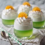 Irish Jello Shots are a festive layered gelatin treat that combines vibrant lime, creamy white, and orange gelatin layers topped with whipped cream and colorful sprinkles. This no-alcohol party snack is perfect for St. Patrick’s Day or any fun gathering, offering a visually appealing and deliciously sweet experience.