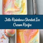 Want to wow your guests? Serve the Jello Rainbow Sherbet Ice Cream Recipe in clear parfait glasses to showcase its brilliant layers. You can also use mini cones or paper cups lined with edible flowers or fruit slices to add personality and flair to your presentation.