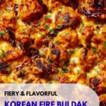 Korean Fire Buldak Chicken is a spicy, flavorful dish featuring tender boneless chicken thighs marinated in a rich, fiery sauce made from gochujang and other Asian ingredients. Cooked on the stovetop to caramelized perfection and optionally topped with melted mozzarella, this popular Korean street food brings heat and comfort in every bite, perfect for serving with steamed rice and garnishes like sesame seeds and green onions.
