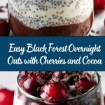 A delicious and nutritious Black Forest-inspired overnight oats recipe featuring layers of cocoa-infused oats and fresh cherries. Perfect for a quick and satisfying breakfast that requires no cooking and is easily customizable with dairy or non-dairy milk and sweeteners.