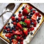 - Add Fresh Berries and Garnish: Just before serving, scatter the sliced strawberries, blueberries, and raspberries evenly over the top. Garnish with fresh mint leaves if desired for a pop of color and freshness.