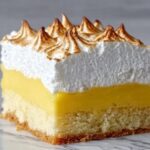This delightful Lemon Cake with Fluffy Meringue Layers combines a tender, buttery cake base with a crisp and airy meringue topping, layered with whipped cream and tangy lemon curd for a refreshing and elegant dessert perfect for any occasion.