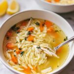 A refreshing and comforting Lemon Chicken Orzo Soup that combines tender shredded chicken, nutritious vegetables, and zesty lemon flavors in a hearty chicken broth, perfect for a quick 30-minute meal.