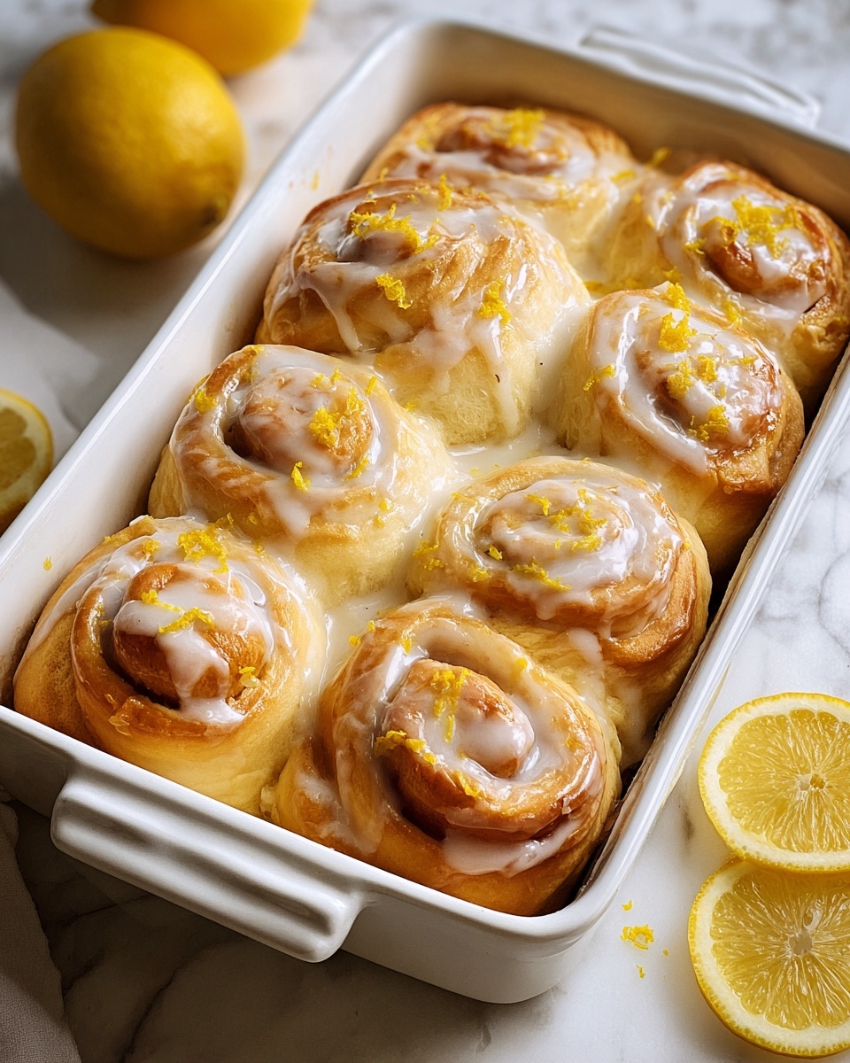 - Make Lemon Glaze: Whisk the powdered sugar with 2 to 3 tablespoons of fresh lemon juice until smooth and pourable to create a tangy glaze to complement the sweetness of the rolls.