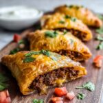 These Loaded Taco-Stuffed Cheesy Pockets are a crowd-pleasing meal featuring seasoned ground beef, creamy salsa and cream cheese filling, all wrapped in tortillas and baked to golden perfection with melted cheddar cheese inside. Perfect for a quick family dinner or a fun party appetizer, they combine savory, cheesy, and tangy flavors in a convenient handheld pocket.