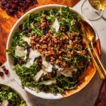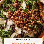 How to Serve Make Ahead Thanksgiving Brussels Sprouts and Arugula Salad with Manchego, Cranberries, and Candied Walnuts Recipe