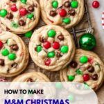 Arrange your M&M Christmas Cookies Recipe on a festive platter lined with evergreen sprigs or holiday-themed napkins to bring out the Christmas spirit visually. You can also package them in decorative tins or clear cellophane bags with red ribbons to share the joy with friends and family as a heartfelt gift.