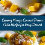 This Mango Coconut Panna Cotta is a refreshing, tropical dessert that combines creamy coconut layers with vibrant mango puree. Perfectly set and topped with fresh mango slices, toasted coconut flakes, and mint leaves, this no-bake treat is elegant and easy to prepare, making it ideal for warm-weather entertaining or a delightful ending to any meal.