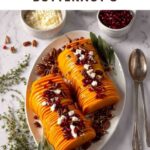 For a stunning presentation, arrange the squash slices fanned out on a large platter and drizzle the brown butter herb sauce artistically across. Garnish with whole toasted nuts and scatter the goat cheese, cranberries, and pomegranate arils evenly for a festive and elegant look. Alternatively, serve individual portions in rustic ramekins for a cozy, intimate dining experience that will impress at any dinner party.