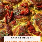 Marry Me Chicken is a creamy, flavorful dish featuring tender chicken thighs simmered in a rich Parmesan and sun-dried tomato sauce. This comforting recipe combines a savory blend of Cajun spices, garlic, and Italian herbs, finished with a luscious creamy sauce baked to perfection. Perfect for an impressive yet easy dinner, it pairs wonderfully with mashed potatoes or your favorite side.