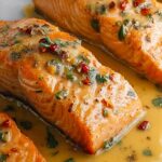 This Marry Me Salmon recipe is a creamy, flavorful dish featuring perfectly seared salmon fillets simmered in a rich sauce made with sun-dried tomatoes, garlic, heavy cream, and Parmesan cheese. Ready in just 25 minutes, it’s an elegant yet easy meal perfect for weeknight dinners or special occasions.