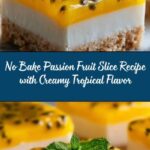 This No-Bake Passion Fruit Slice is a refreshing and easy-to-make dessert featuring a crunchy biscuit base topped with a creamy, tangy passion fruit filling. Perfect for warm days, this slice requires no baking and sets in the refrigerator to deliver a luscious tropical treat in just a few hours.