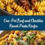 This One-Pot Beef and Cheddar Ranch Pasta is a hearty, creamy, and flavorful meal perfect for a quick weeknight dinner. Ground beef is browned with onions, then combined with ranch seasoning, pasta, and liquids to simmer until tender. Finally, sharp cheddar cheese is stirred in to create a delicious, cheesy finish all cooked in just one pot.