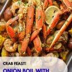 This Onion Boil with Crab is a classic, flavorful seafood feast featuring tender crab legs simmered with aromatic onions, red potatoes, corn on the cob, and a blend of seasonings. The broth infuses the ingredients with a rich, savory taste, making it a perfect communal dish for gatherings or a comforting meal at home.