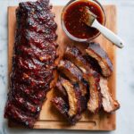 - Rest and Serve: Remove ribs from the oven and let them rest for about 5 minutes to redistribute juices. Transfer to a cutting board and slice between the bones using a serrated knife. Serve warm with additional BBQ sauce if desired.