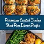 This Parmesan Crusted Chicken Sheet Pan Dinner is a quick and easy one-pan meal featuring juicy, flavorful chicken breasts topped with a crispy Parmesan crust, accompanied by a colorful mix of roasted vegetables. Perfect for a healthy weeknight dinner with minimal cleanup.