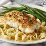 This Parmesan Crusted Cod pairs wonderfully with light sides that won’t overpower the fish. Think buttery steamed asparagus, roasted baby potatoes, or a crisp garden salad. For a heartier meal, creamy risotto or garlic mashed potatoes complement the crust’s crunch perfectly.