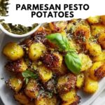 Parmesan Pesto Roasted Potatoes are a delicious and easy-to-make side dish featuring tender baby potatoes roasted to golden perfection, tossed with flavorful pesto and topped with savory Parmesan cheese. This dish offers a perfect balance of herbaceous pesto, nutty Parmesan, and crispy roasted potatoes, making it an ideal accompaniment for any meal.